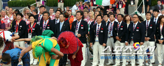 제30회 런던 올림픽에 출전한 한국 선수단이 25일 오후(현지시간) 올림픽 파크 내의 선수촌에서 입촌식을 갖고 있다.