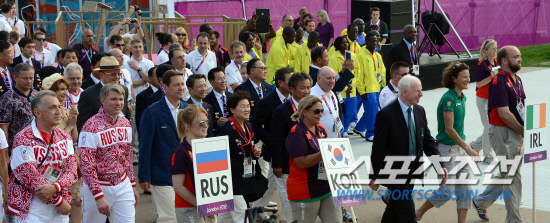 25일 오후(현지시간) 2012 런던올림픽에 출전하는 한국선수단이 올림픽파크 내 선수촌에서 입촌식을 갖고 있다.20120725런던=올림픽사진공동취재단L