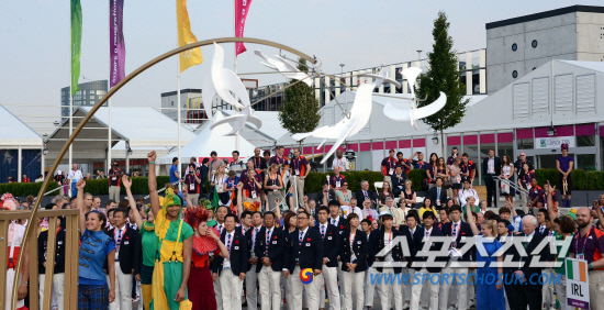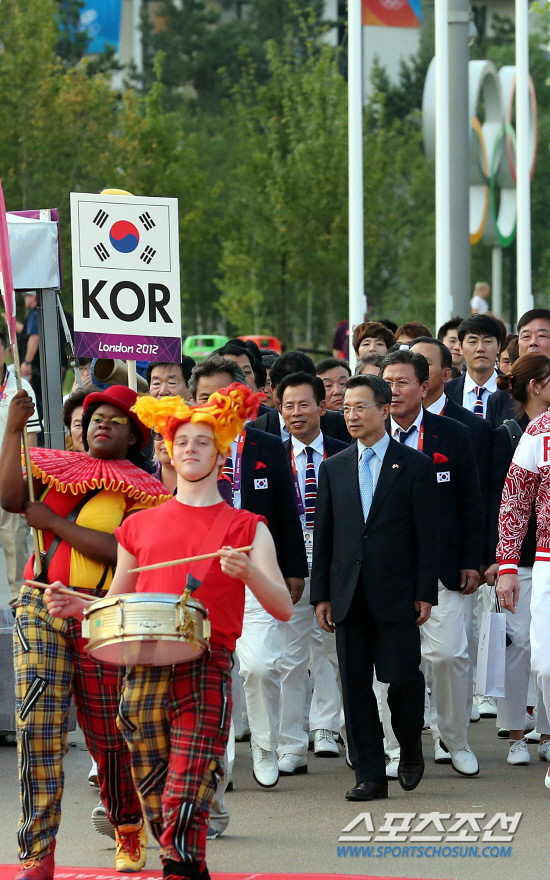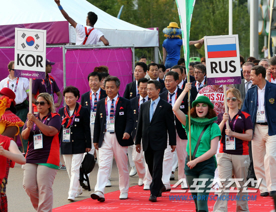 25일 오후(현지시간) 2012 런던올림픽에 출전하는 한국선수단이 올림픽파크 내 선수촌에서 입촌식을 갖고 있다.20120725런던=올림픽사진공동취재단L