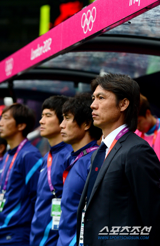 대한민국이 26일 오후 영국 뉴캐슬 세인트제임스파크 스타디움에서 멕시코를 상대로 런던올림픽 남자축구 B조 1차전을 펼쳤다. 홍명보 감독이 경기를 바라보고 있다.