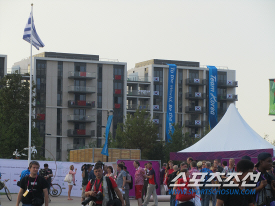 런던 올림픽파크 내에 자리잡은 선수촌, 각 국가는 자신의 동을 표식하는 의미에서 자국의 국기를 내건다. 일반적인 국기를 내걸기도 하고, 특별한 디자인을 가미하기도 한다. 각 국가의 분위기가 고스란히 묻어난다.