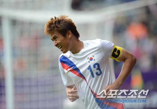 2012 런던올림픽 축구대표팀의 구자철이 26일(현지시간) 뉴캐슬의 세인트 제임스 파크 스타디움에서 열린 멕시코전에서 후반 회심의 슛이 빗나가자 아쉬운 표정을 짓고 있다.