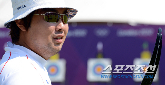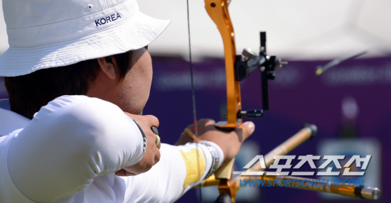 느낌 좋은데요! 26일 오전(현지시간) 2012런던올림픽에 출전하는 한국 양궁 남자 국가대표 임동현 선수가 런던 로즈 크리켓 그라운드 연습장에서 훈련을 하고 있다.20120726런던=올림픽사진공동취재단L