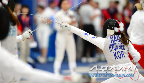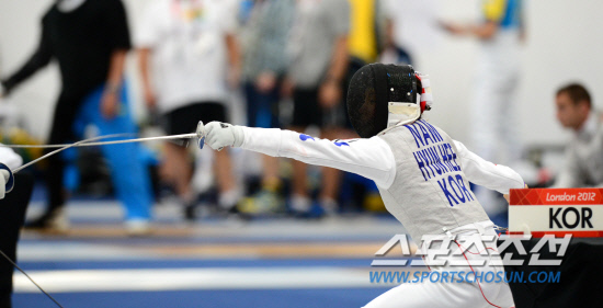 한국 여자 펜싱 사상 첫 금메달에 도전하는 남현희가 27일 오전(현지시간) 런던 엑셀(Excel) 경기장에서 훈련을 하고 있다.