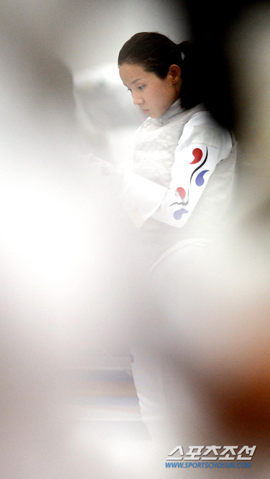 2008 베이징올림픽 은메달 리스트인 한국 펜싱 국가대표 남현희 선수가 27일 오전(현지시간) 영국 런던 엑셀경기장에서 훈련을 위해 준비를 하고 있다.20120727런던=올림픽사진공동취재단L