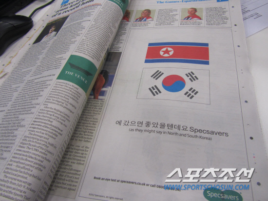 영국의 한 안경체인점은 런던올림픽 개막일인 27일 주요 일간지에 관련 광고를 실어 핫이슈를 상술로 연결하는 발빠른 행보를 보였다. '스펙세이버스'라는 상호의 안경체인점은 인공기와 태극기를 위아래로 배치한 후 '에 갔으면 좋았을 텐데요 Specsavers'라는 한글 카피를 썼다. 영어와 한국어를 착각해 문장배열이 거꾸로 됐다. '스펙세이버에 갔으면 좋았을 텐데요'라는 것이다. '안경체인점에 갔으면 인공기와 태극기를 혼동할 일은 없었을 것'이라는 독한 메시지다. '안경 쓰고 똑바로 좀 보라'는 풍자과 해학을 담았다.