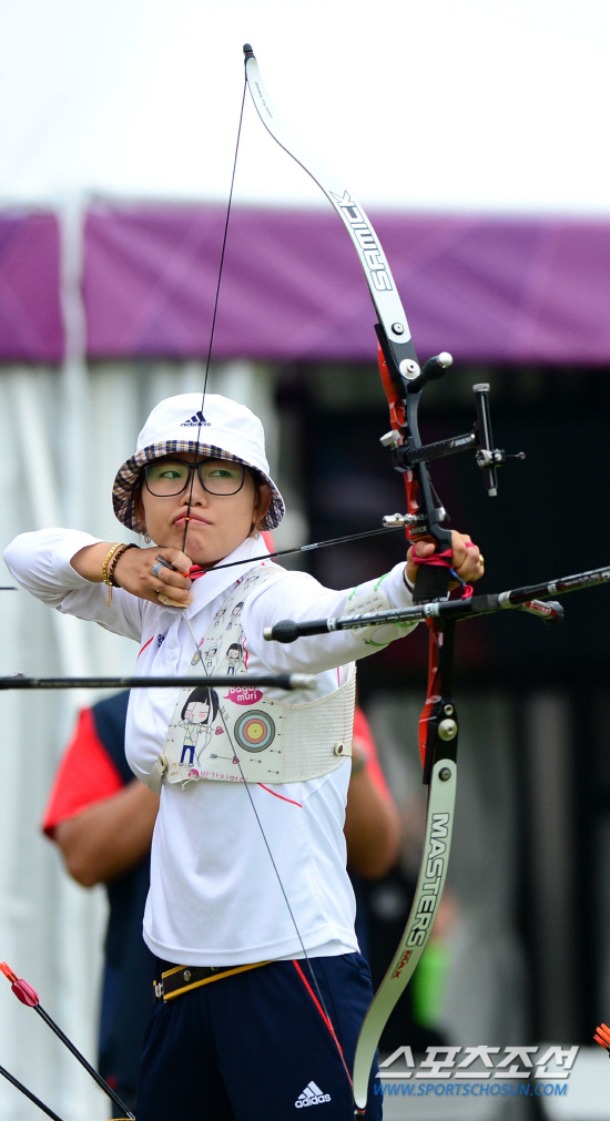 '여자양궁 단체전 올림픽 7연패 도전!' 2012런던올림픽에 출전하는 여자양궁 국가대표 선수들이 27일 런던 로즈 크리켓 그라운드에서 랭킹라운드를 펼쳤다. 이성진, 최현주, 기보배 3명은 개인전과 단체전 금메달에 도전한다.최현주가 힘차게 활시위를 당기고 있다.