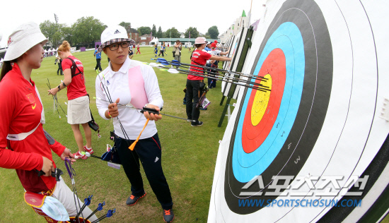 27일 오후(현지시간) 2012 런던올림픽에 출전하는 한국 양궁 여자 국가대표팀 이성진선수가 런던 로즈 크리켓 그라운드에서 랭킹라운드를 진행하고 있다..20120726 런던=올림픽사진공동취재단 i