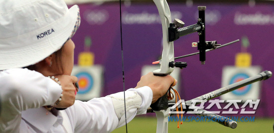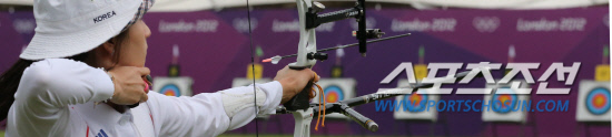 27일 오후(현지시간) 2012 런던올림픽에 출전하는 한국 양궁 여자 국가대표팀 기보배선수가 런던 로즈 크리켓 그라운드에서 랭킹라운드를 진행하고 있다..20120726 런던=올림픽사진공동취재단 i