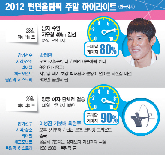 런던올림픽조직위가 홈페이지를 통해 29일 새벽 펼쳐질 남자자유형 400m가 박태환-파울 비더만-쑨양의 치열한 3파전이 될 것으로 예상했다.
