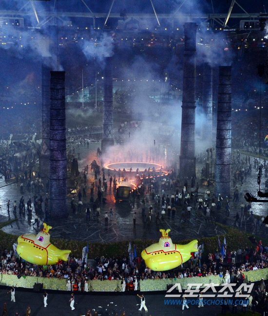 그라운드에 설치된 무대에서 영국의 역사를 주제로 한 공연이 진행되고 있다. 20120727. 런던=올림픽사진공동취재단e