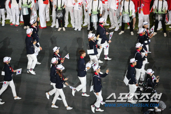 [런던포토] 입장하는 대한민국 선수단 '태극기 손에 들고'