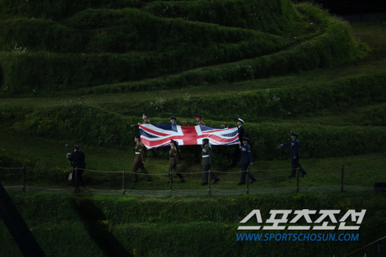 런던 올림픽이 화려한 개막식을 시작으로 17일 동안의 열전에 들어갔다. 27일 밤 런던 올림픽스타디움에서 열린 개막식에서 영국 국기가 입장하고 있다.