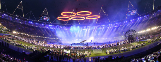 27일 오후 9시(현지시간) 런던 북동부 올림픽스타디움에서 지구촌 최대 스포츠축제인 제30회 런던하계올림픽 개막식이 열리고 있다. 20120727 런던=올림픽사진공동취재단m