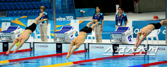 박태환이 28일 런던올림픽파크 아쿠아틱센터에서 열린 400m 예선전 경기에 출전했다. 박태환은 예선 3조 4번 레인에서 경기를 마쳤으나 공식기록에서 실격 처리 됐다. 힘차게 스타트하고 있는 박태환.