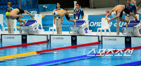 박태환이 28일 런던올림픽파크 아쿠아틱센터에서 열린 400m 예선전 경기에 출전했다. 박태환은 예선 3조 4번 레인에서 경기를 마쳤으나 공식기록에서 실격 처리 됐다. 힘차게 스타트하고 있는 박태환.