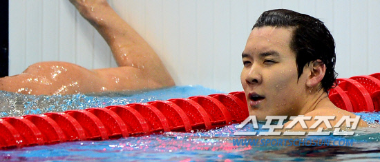 박태환이 28일 런던올림픽파크 아쿠아틱센터에서 열린 400m 예선전 경기에 출전했다. 박태환은 예선 3조 4번 레인에서 경기를 마쳤으나 공식기록에서 실격 처리 됐다. 경기를 마치고 실격 소식에 어이없는 표정으로 기록판을 바라보고 있는 박태환.