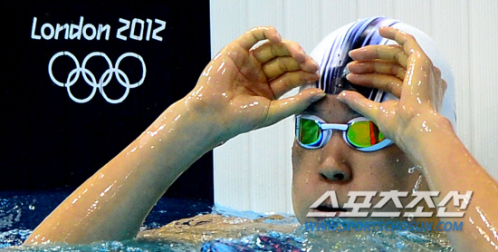 박태환이 28일 런던올림픽파크 아쿠아틱센터에서 열린 400m 예선전 경기에 출전했다. 박태환은 예선 3조 4번 레인에서 경기를 마쳤으나 공식기록에서 실격 처리 됐다. 경기를 마치고 기록판을 바라보고 있는 박태환.