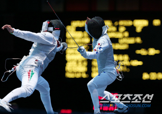 [런던포토] 남현희, '엄청난 스피드로 밀어붙여!'