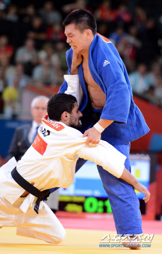 28일 영국 런던 엑셀에서 열린 2012런던올림픽 유도 남자 60kg급 8강전에서 최광현 선수가 아르센 갈스티안(러시아)과의 경기에서 방어하고 있다. 최광현 선수는 패배하였다./20120728런던=올림픽사진공동취재단