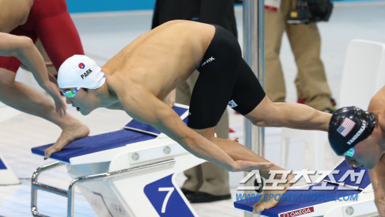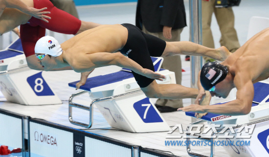 2012런던올림픽 남자 자유형 400m에 출전한 마린보이 박태환이 29일 새벽(한국시각) 런던 올림픽파크 내 아쿠아틱센터에서 열린 결승전에서스타트 하고 있다.20120728. 런던=올림픽사진공동취재단b