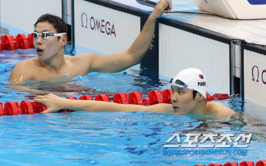 [런던포토] 기록 확인하는 박태환 '쑨양, 빠르네'