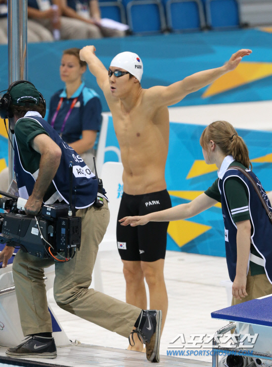 박태환 선수가 29일 런던 올림픽 아쿠아틱스 센터에서 열린 200m 자유형 예선 경기에 출전해 몸을 풀고 있다. 20120729. 런던=올림픽사진공동취재단b
