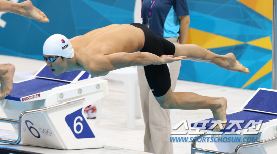 박태환 선수가 29일 런던 올림픽 아쿠아틱스 센터에서 열린 200m 자유형 예선 경기에 출전해 5번 레인에서 힘차게 스타트하고 있다. 박태환은 5위로 준결승에 진출했다. 20120729. 런던=올림픽사진공동취재단b