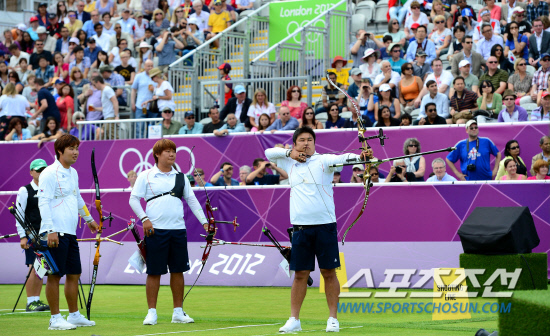 남자 단체팀은 28일(한국시각) 영국 런던 로즈 크리켓 그라운드에서 열린 4강전에서 미국에 224대219로 분패했다. 결승 진출 실패와 동시에 2000년 시드니올림픽부터 이어져온 단체전 연속 금메달의 역사도 '3'에서 멈췄다.