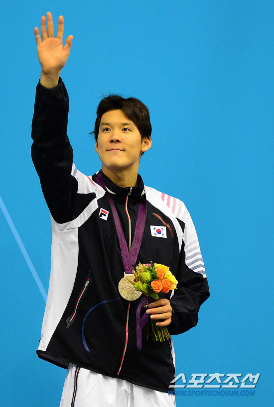 28일 런던올림픽파크 아쿠아틱센터에서 열린 남자 수영 400m에서 우여곡절 끝에 결선에 진출한 박태환이 금메달에 도전했지만 좌절 됐다. 중국의 쑨양에 이어 2위로 결승점에 도착해 은메달을 딴 박태환이 시상식에서 기념 포즈를 취하고 있다. 20120728런던=올림픽사진공동취재단k