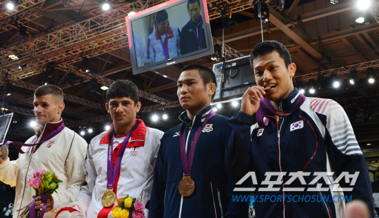 조준호가 2012년 런던올림픽에서 한국 선수단에 네 번째 메달을 선사했다. 29일 오후(현지시간) 런던의 엑셀 런던 노스 아레나에서 열린 유도 남자 66㎏급 동메달 결정전에서 동메달을 목에 건 조준호(오른쪽)가 메달을 확보한 선수들과 함께 포즈를 취하고 있다.