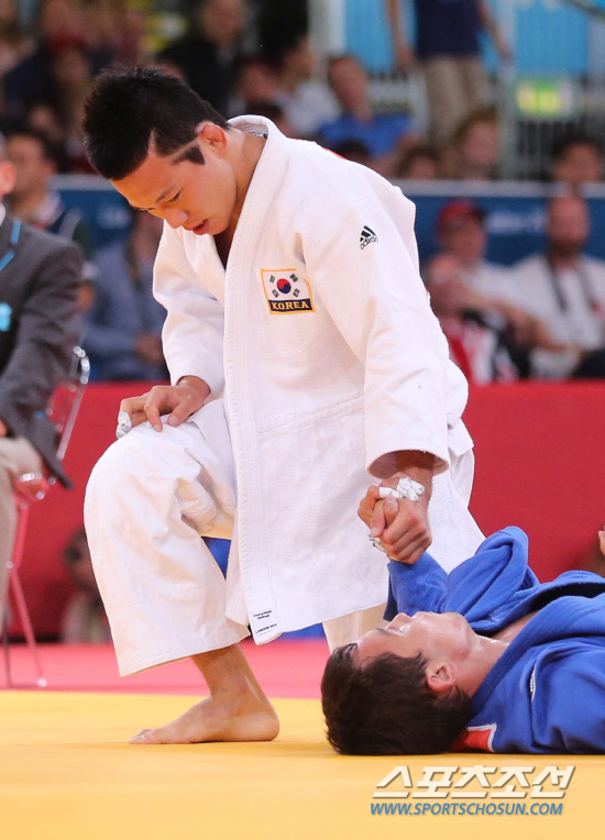 [런던포토] 유도 왕기춘'고생했어요,일어나세요'