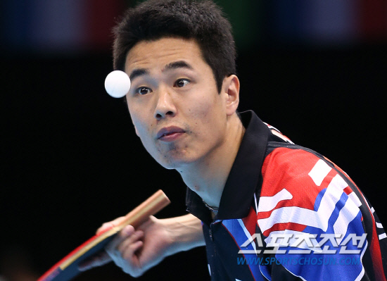 30일오전(현지시각) 영국 런던 엑셀 노스아레나2에서 열린 남자 탁구 단식 예선전에서 주세혁 선수가 김혁봉(북한)과의 경기에서 서브를 넣고 있다. 오늘 남북대결에서는 6세트 듀스까지 가는 접전을 벌였으나, 주세혁 선수가 13:15로 아쉽게 패했다. 20120730 런던=올림픽사진공동취재단m