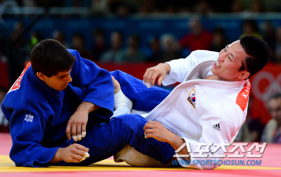 한국 유도의 간판 왕기춘이 4년만에 다시 올림픽 금메달에 도전한다. 왕기춘은 30일 런던 엑셀 노스아레나 경기장에서 남자유도 73kg급 예선전을 펼쳤다. 왕기춘은 16강전에서 체코의 예젝에 유효승을 거두며 8강에 진출 했다. 경기 도중 밝은 표정을 짓고 있는 왕기춘(흰색도복).