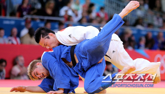 왕기춘이 30일 영국 런던의 엑셀 런던 사우스아레나에서 열린 대회 남자 73㎏급 8강전에서 니컬러스 델포폴로(미국·랭킹 12위)와의 경기에서 연장전까지 가는 접전을 펼치고 있다.