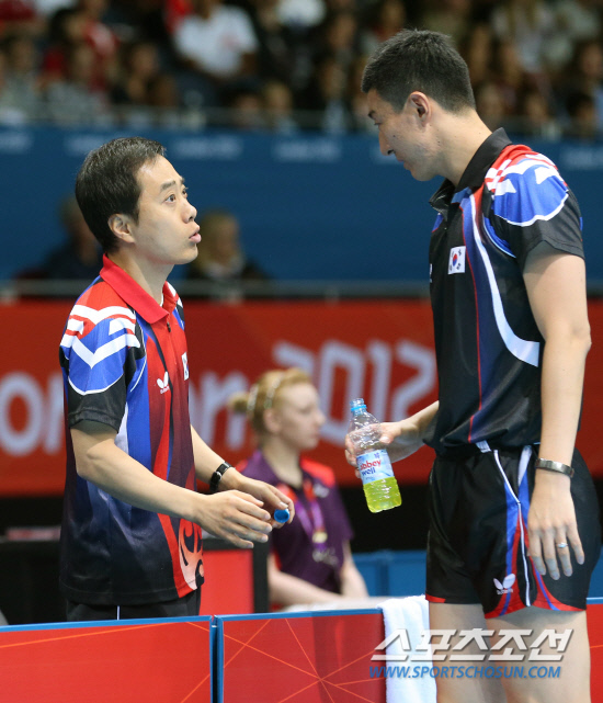 30일오전(현지시각) 영국 런던 엑셀 노스아레나2에서 열린 남자 탁구 단식 예선전 3라운 오상은 대 마코스 프레이타스(포루투갈)의 경기에서 유남규 감독이 지시를 하고 있다. 20120730 런던=올림픽사진공동취재단m