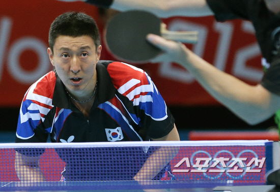 30일오전(현지시각) 영국 런던 엑셀 노스아레나2에서 열린 남자 탁구 단식 예선전 3라운에서 오상은 선수가 마코스 프레이타스(포루투갈)와 시합을 하고 있다. 이번 경기에서 오상은 세트스코어 4:0으로 가볍게 승리했다. 20120730 런던=올림픽사진공동취재단m