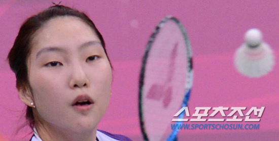 배드민턴 여자단식 성지현이 30일(현지시간) 웸블리 아레나에서 열린 홍콩 YIP Pui Yin과의 경기에서 드라이브 공격을 하고 있다.