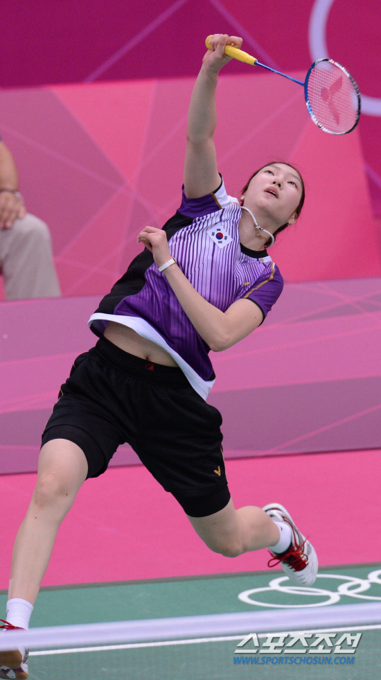 배드민턴 여자단식 성지현이 30일(현지시간) 웸블리 아레나에서 열린 홍콩 YIP Pui Yin과의 경기에서 강력한 스매싱 공격을 하고 있다.