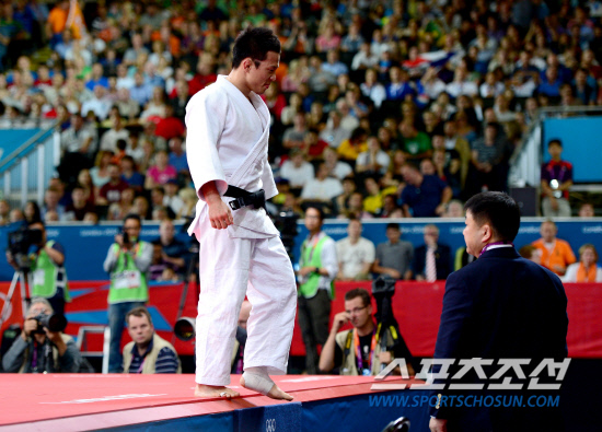 왕기춘이 또 다시 금메달이 좌절됐다. 왕기춘은 30일 런던 엑셀 노스아레나 경기장에서 열린 남자유도 73kg급 준결승전에서 러시아 이사에프에게 패하며 결승 진출이 좌절됐다. 아쉬운 발걸음으로 매트를 나서고 있는 왕기춘.