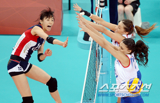 30일 오전(현지시간) 김형실 감독이 이끄는 한국여자배구팀이 영국 런던 얼스코트에서 열린 2012런던올림픽 여자배구 B조 2차전에서 장신군단 세르비아를 세트스코어 3-1(25-12,25-16,25-21)로 제압했다.한송이 선수가 강스파이크 공격을 하고 있다.20120730런던=올림픽사진공동취재단L