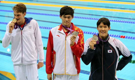 '한국 수영의 힘' 박태환(23·SK텔레콤)이 31일 새벽 (한국시각) 런던 아쿠아틱센터에서 펼쳐진 런던올림픽 남자자유형 200m에서 은메달을 목에 걸었다. 쑨양과 마지막 0.01초까지 같은, 1분44초93의 기록으로 공동 2위에 올랐다. 프랑스의 야닉 아넬이 우승했다. 1분43초14의 호기록이었다.
