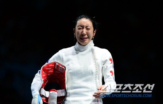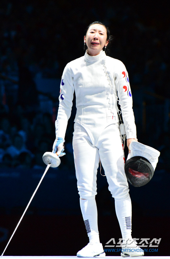 런던 올림픽 여자 에페 개인전 준결승에서 시계가 멈추는 어이없는 상황이 벌어졌다. 한국 여자 펜싱계의 기대주 신아람(26·계룡시청)이 30일(현지시간) 영국엑셀 런던 사우스 아레나에서 열린 에페 개인전 준결승에서 브리타 하이데만(독일)에게 5-6으로 어이없는 패배를 당하자 펜싱코트를 떠나지 않은 채 눈물을 흘리고 있다.