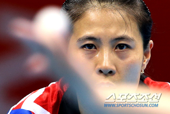 30일오전(현지시각) 영국 런던 엑셀 노스아레나2에서 열린 여자 탁구 단식 16강전에서 김경아 선수가 센얀페이(스페인)를 상대로 시합을 하고 있다. 김경아는 세트스코어 4:1으로 승리를 거둬 8강에 안착했다. 20120730 런던=올림픽사진공동취재단m