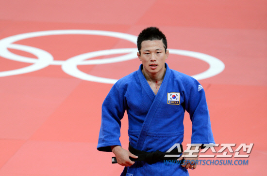 2012 런던올림픽 유도대표팀의 왕기춘이 30일(현지시간) 런던의 엑셀 런던에 위치한 올림픽 유도 경기장에서 열린 남자 73kg급 동메달 결정전에서 우고 르그랑(프랑스)에게 패한 뒤 씁쓸한 인사를 남기고 퇴장하고 있다.