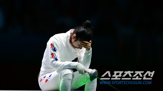 [런던포토] 고개 숙인 신아람 '어이가 없네'