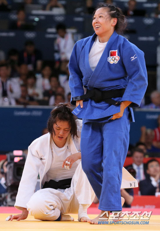 여자 유도 63kg이하급에 출전한 한국의 정다운이 31일 오후(현지시각) 런던 엑셀런던 노스아레나에서 열린 준결승에서 중국 쉬리리에게 패한 뒤 고개를 떨구고 있다.