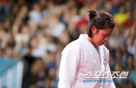 여자 유도 63kg이하급에 출전한 한국의 정다운이 31일 오후(현지시각) 런던 엑셀런던 노스아레나에서 열린 준결승에서 중국 쉬리리에게 패한 뒤 고개를 떨구고 있다.
