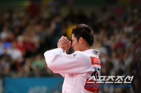 남자 유도 81kg이하급에 출전한 한국의 김재범이 31일 오후(현지시각) 런던 엑셀런던 노스아레나에서 열린 준결승에서 러시아의 이반을 상대로 절반승을 거둬 결승에 진출한 뒤 기도를 하고 있다.