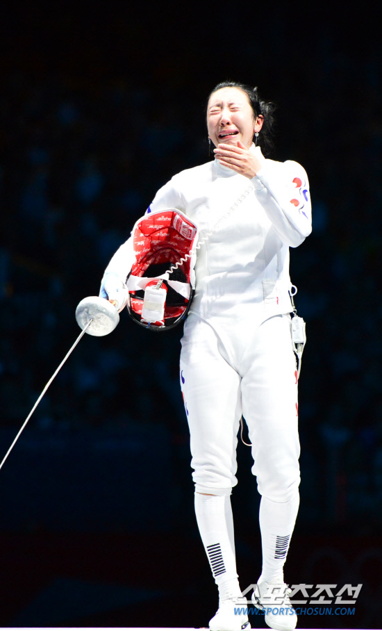 [런던포토] 신아람, 이상한 판정에 눈물만...